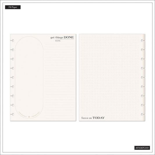 Say goodbye to juggling multiple notebooks and planners for different purposes. With fill paper, you can keep all your notes, plans, goals, and more in one place. Whether it's project planning, grocery lists, or note-taking, there's a variety of options to add to your disc-bound planner, journal, or notebook. You can also use fill paper to create a custom notebook from scratch—just pair it with discs, covers, and any other planner add-ons!