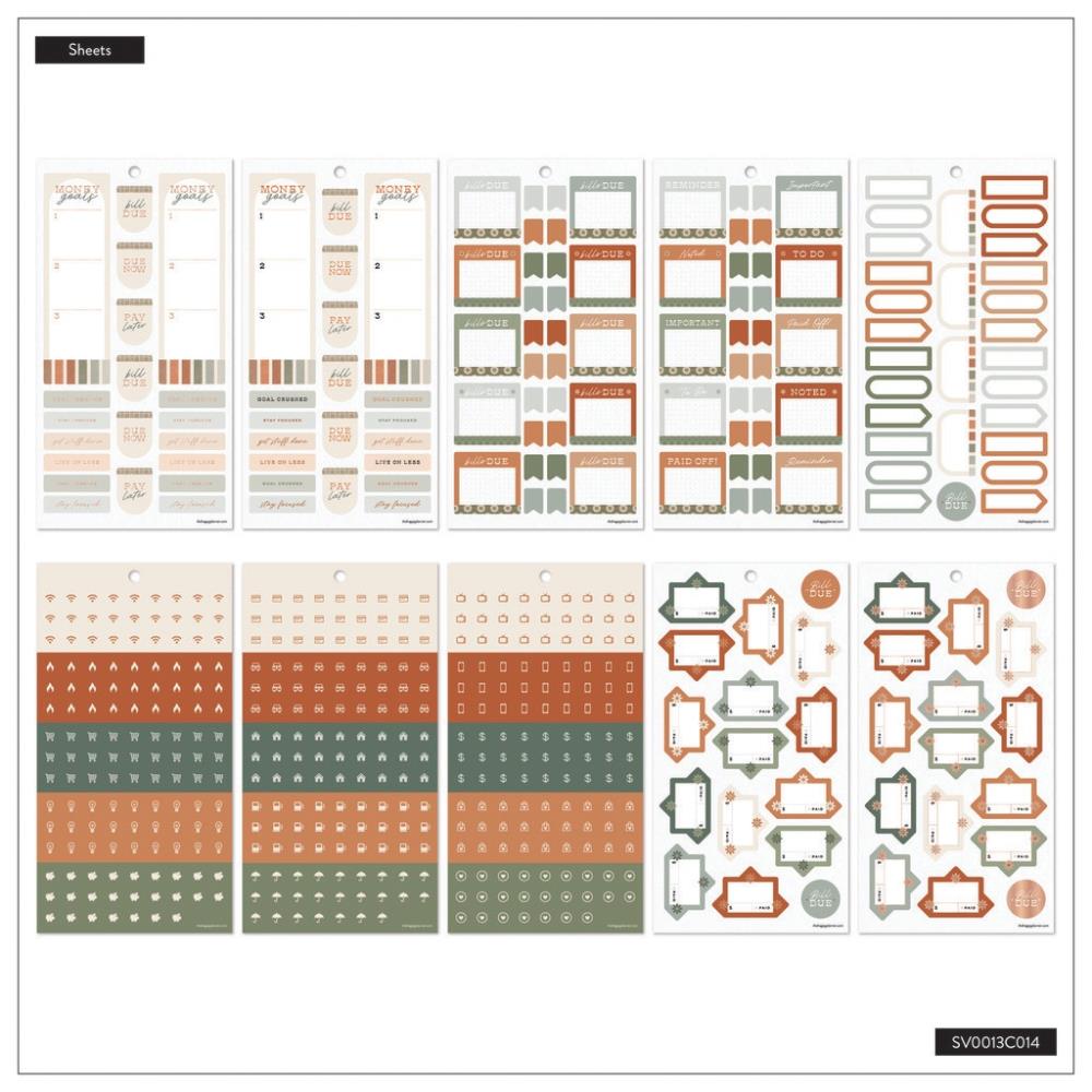 This Sage & Terra-cotta budget sticker pack was made for tracking your expenses. Add to any Classic size budget-themed Happy Planner for extra financial planning potential or use in any standard Happy Planner to customise your plans to track your accounts and bill payments. The theme features greens and soft terra-cotta oranges to ground your plans in earthy tones.